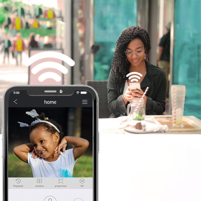 Díky vestavěné podpoře 2,4G WiFi (5G WiFi není podporováno) můžete prostřednictvím aplikace APP konverzovat v reálném čase s kýmkoli před kamerou. Bezpečně ukládejte záběry z kamery s podporou až 128GB micro SD (není součástí kamery).