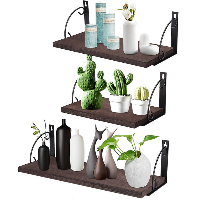 Prateleiras de madeira montadas na parede, 3 camadas - Suporte de prateleiras para armazenamento e exibição DIY - Ideal para organizar decoração de casa e itens pessoais